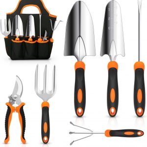 CHRYZTAL Stainless Steel Heavy Duty Garden Tool Set, Complete with Non-Slip Rubber Grip, Storage Tote Bag, Outdoor Hand Tools - Perfect Garden Tool Kit Presents for Both Women and Men |