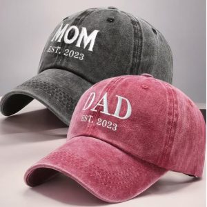 Mom & Dad EMBROIDERED Hat, Dad Hat Pigment Dyed Unstructured Baseball Cap, Mom And Dad To Be, Baby Announcement Gifts, Gifts For New Parents |