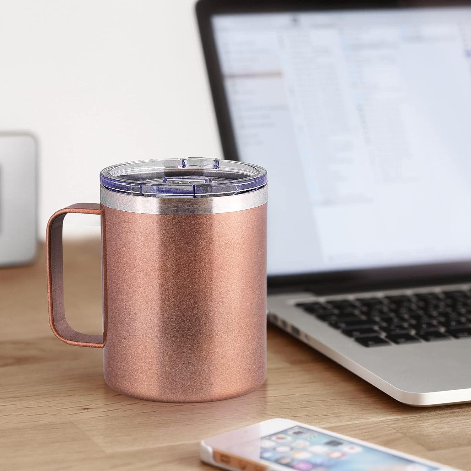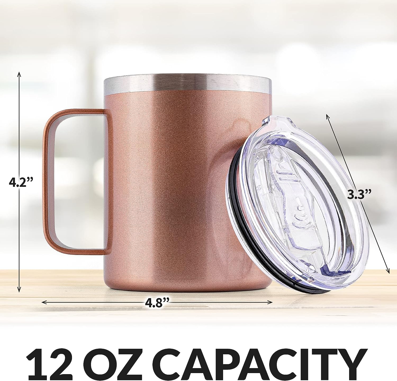 12 oz Insulated Coffee Mug with Lid - Stainless Steel Camping Mug Tumbler with Handle - Double Wall Vacuum Duracoated Insulated Mug For Travel, Camping, Office, Outdoor (Rose Gold) quantity