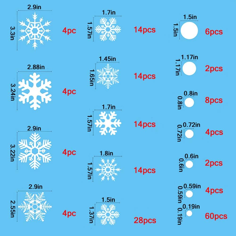 180pcs White Snowflakes Christmas Window Clings Decals,Christmas Stickers for Glass Windows, Xmas Winter Wonderland Ornaments Party Supplies Holiday Home Decorations