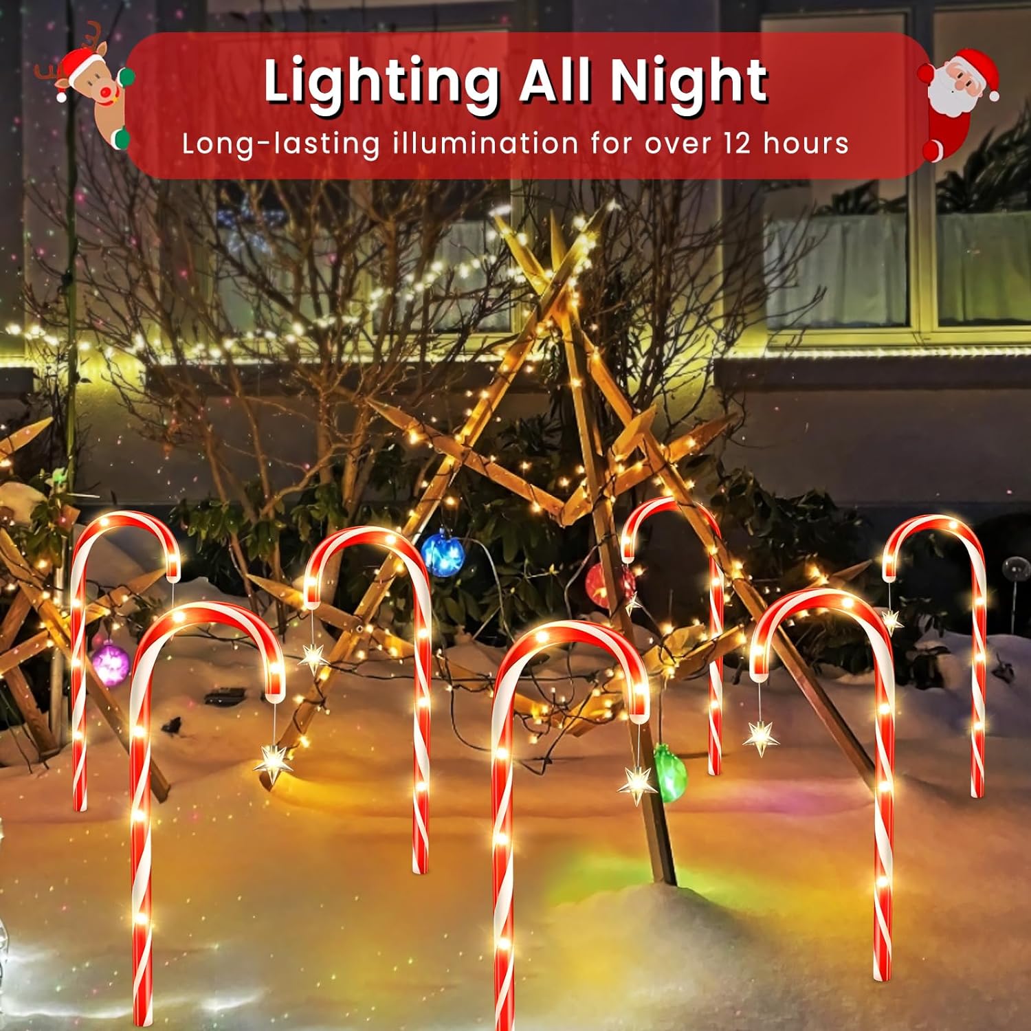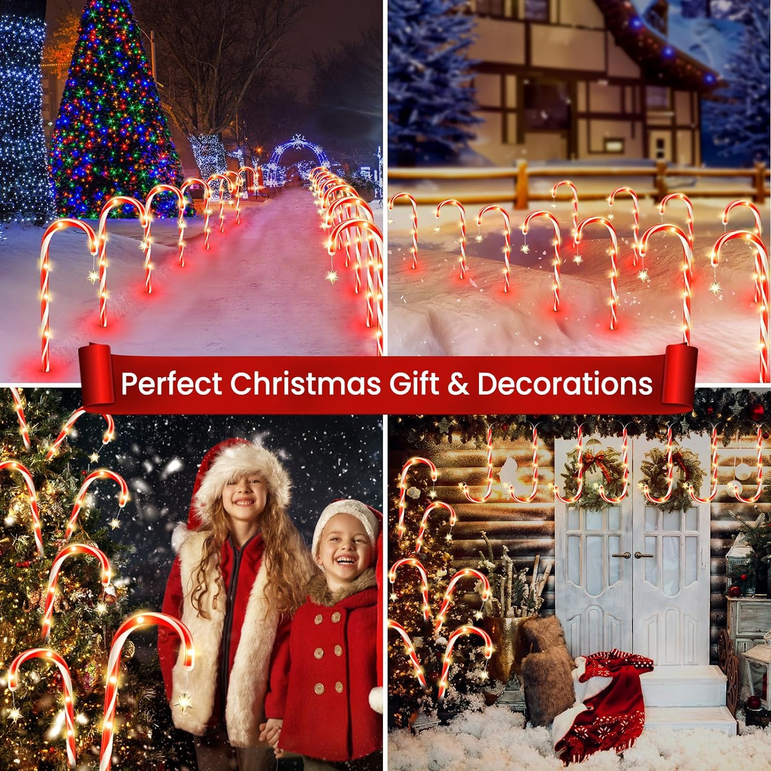 24 Pack Christmas Decorations Outside, WdtPro 19″ 144 LED Bright Solar Christmas Candy Cane Pathway Lights with Star and 8 Modes, Waterproof Outdoor Christmas Decorations for Yard Garden Decor