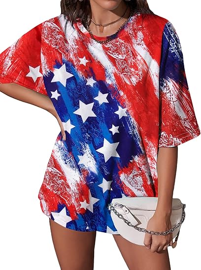 American Flag Shirt Women USA Tie-Dye 4th of July Tshirt America Patriotic Oversized Short Sleeve Tee Tops