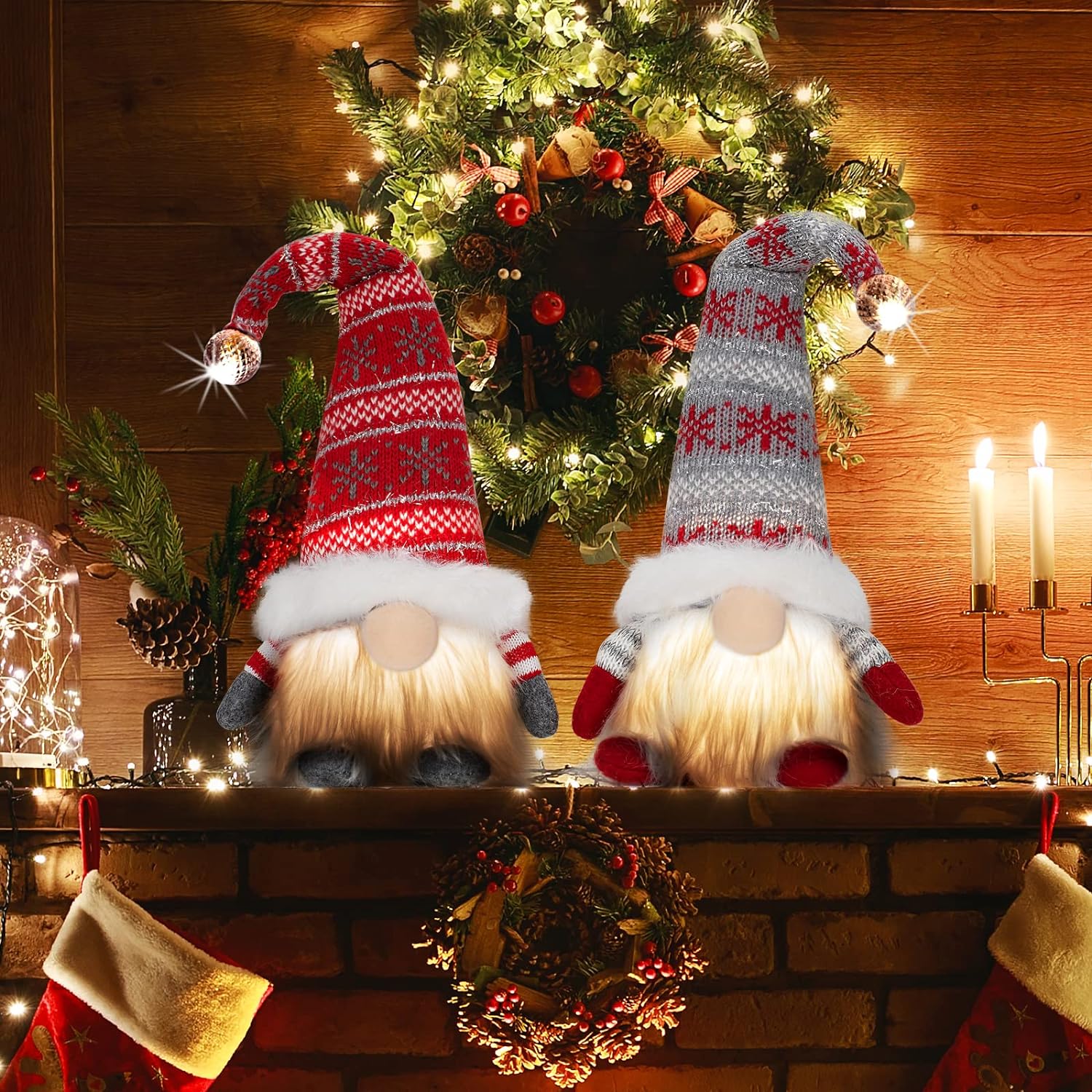 Christmas Gnomes Santa Decorations, Lighted Handmade Swedish Tomte, Light Up Plush Elf Holiday Present Gift Scandinavian Tabletop Christmas Decorations, Pack of 2…