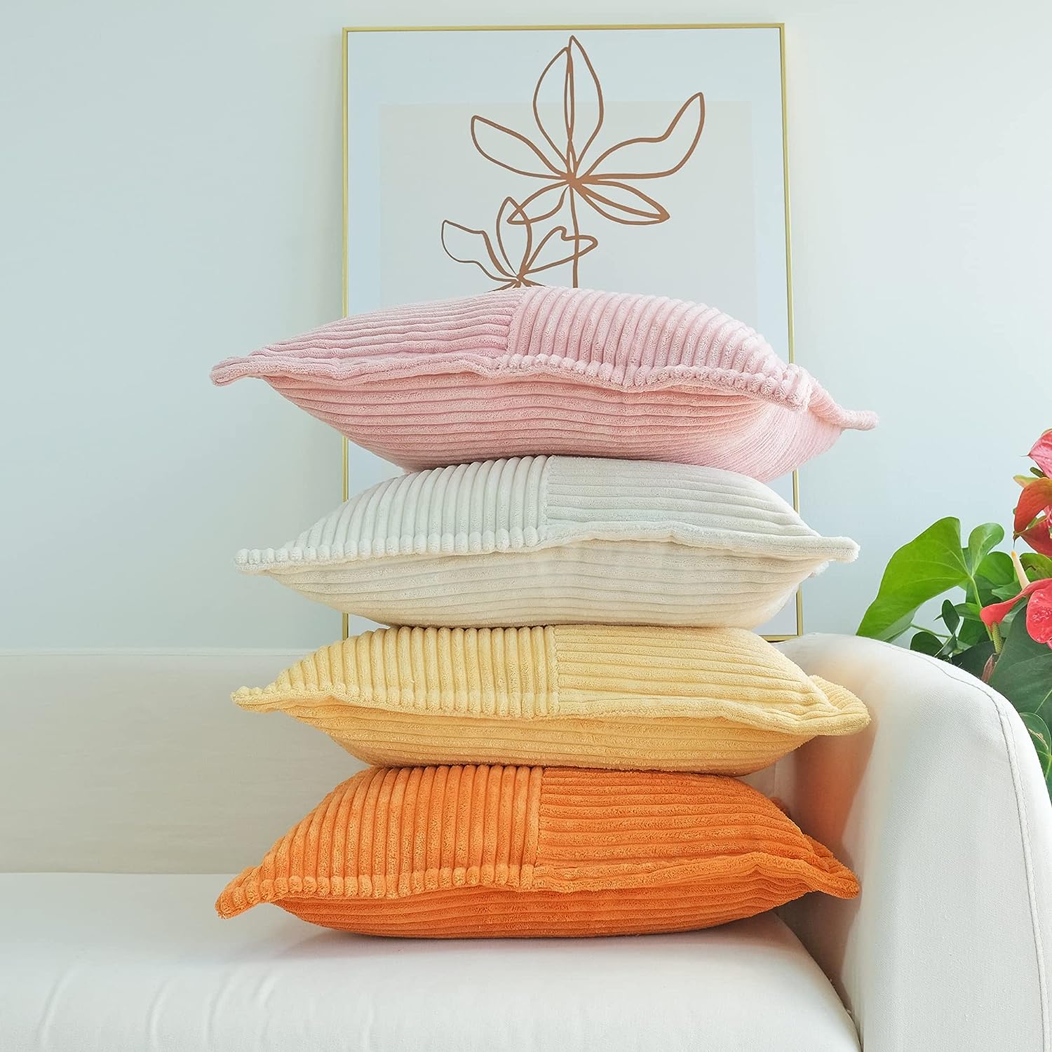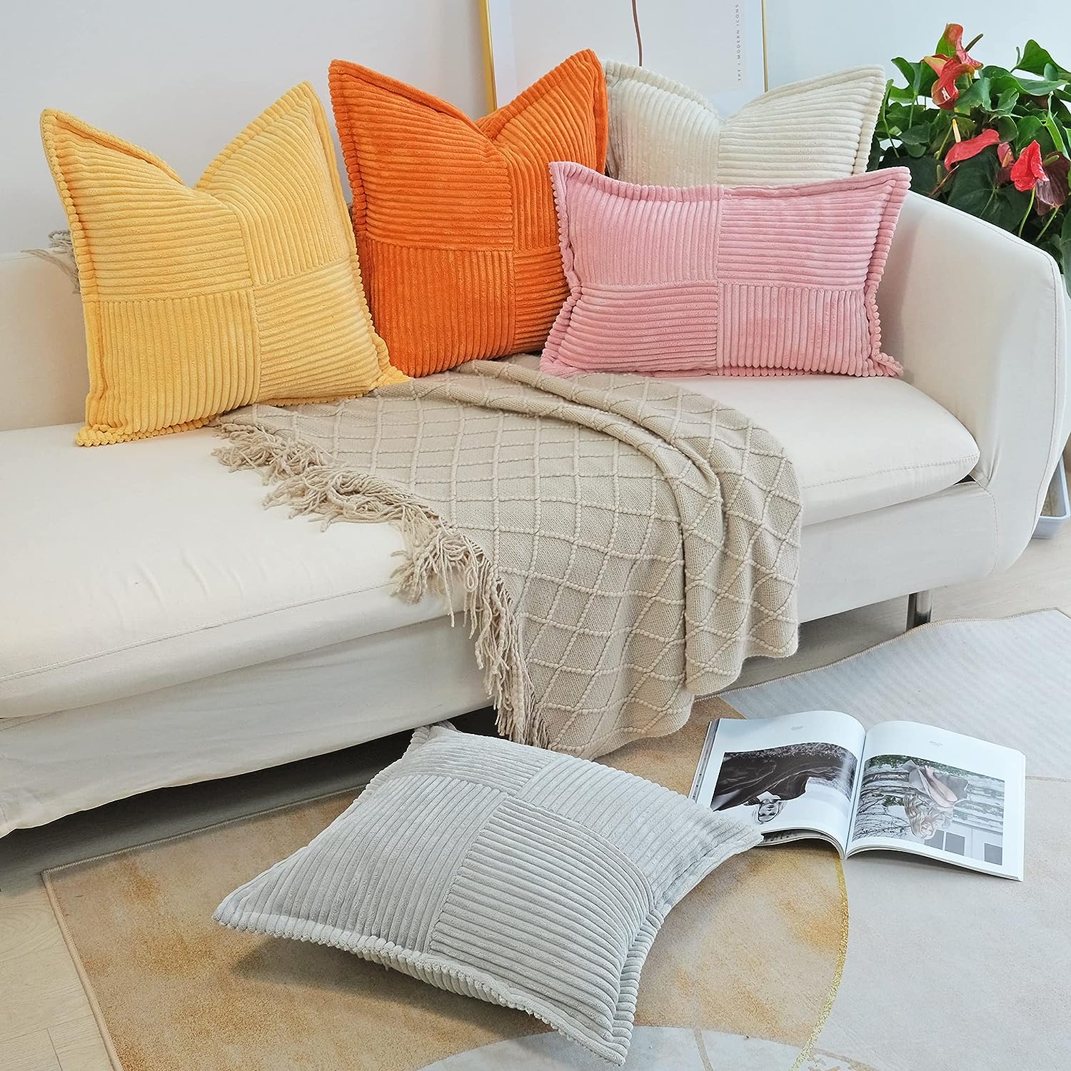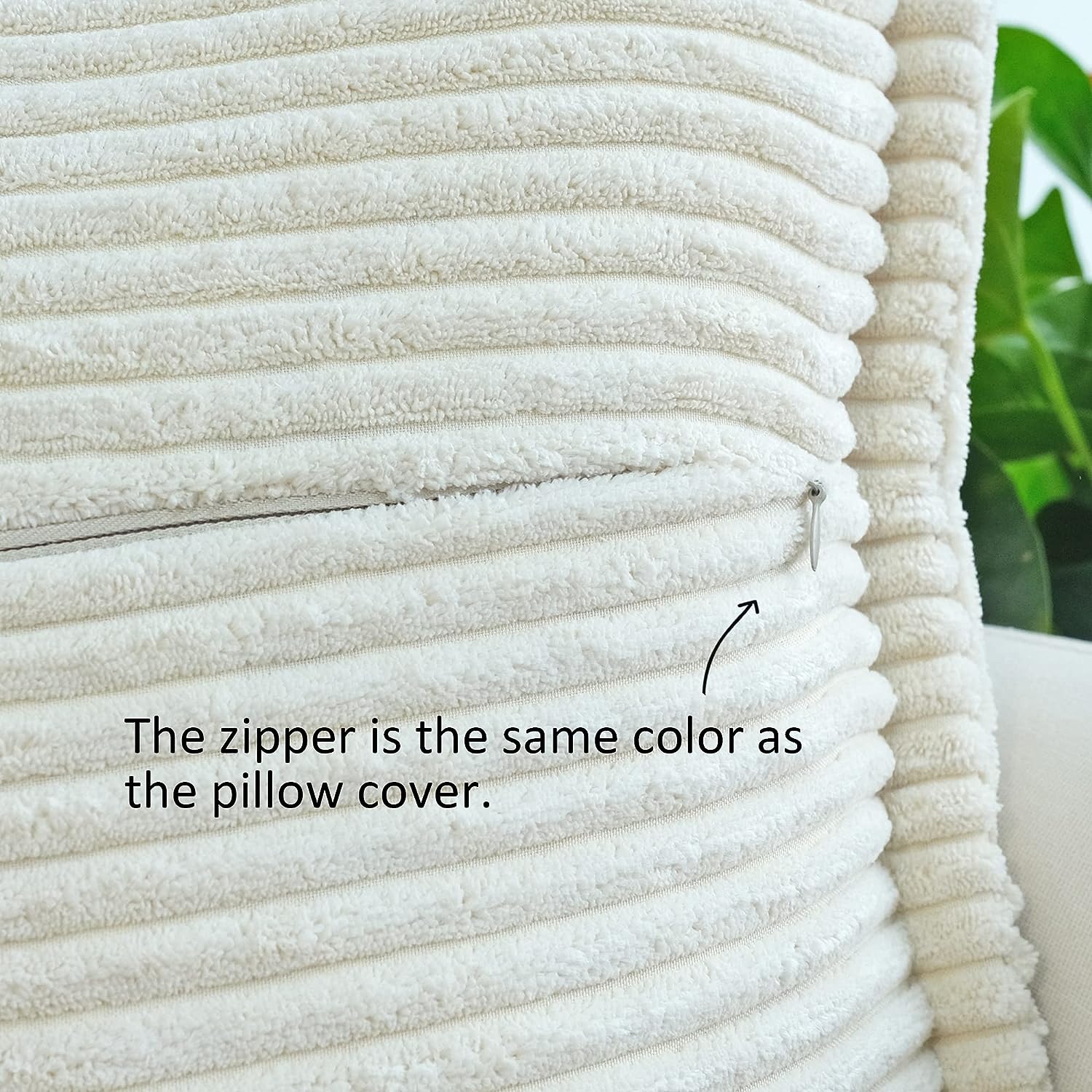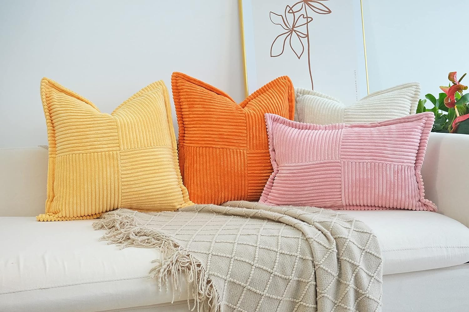 Corduroy Pillow Covers with Splicing Set of 2 Super Soft Boho Striped Pillow Covers Broadside Decorative Textured Throw Pillows for Spring Couch Cushion Livingroom 18 x 18 inch Beige