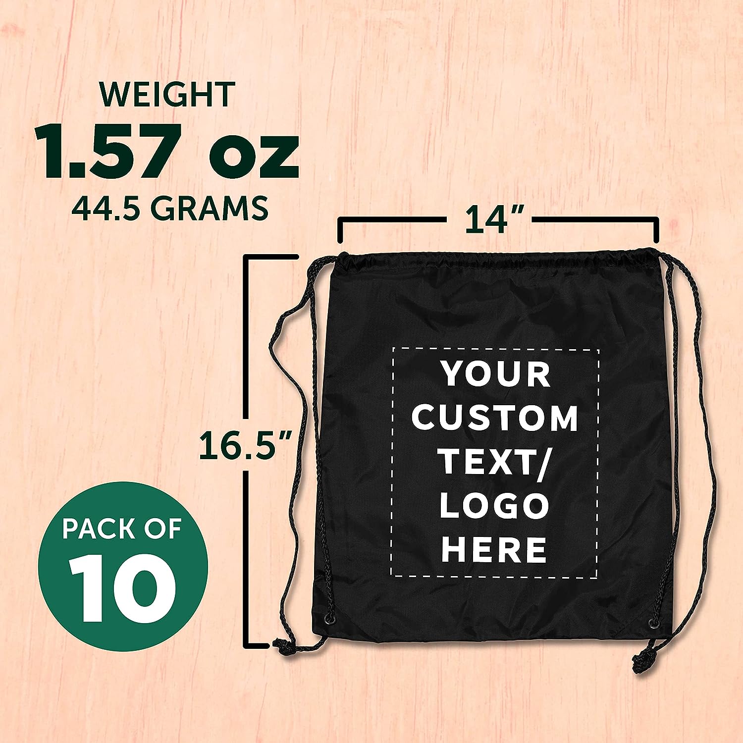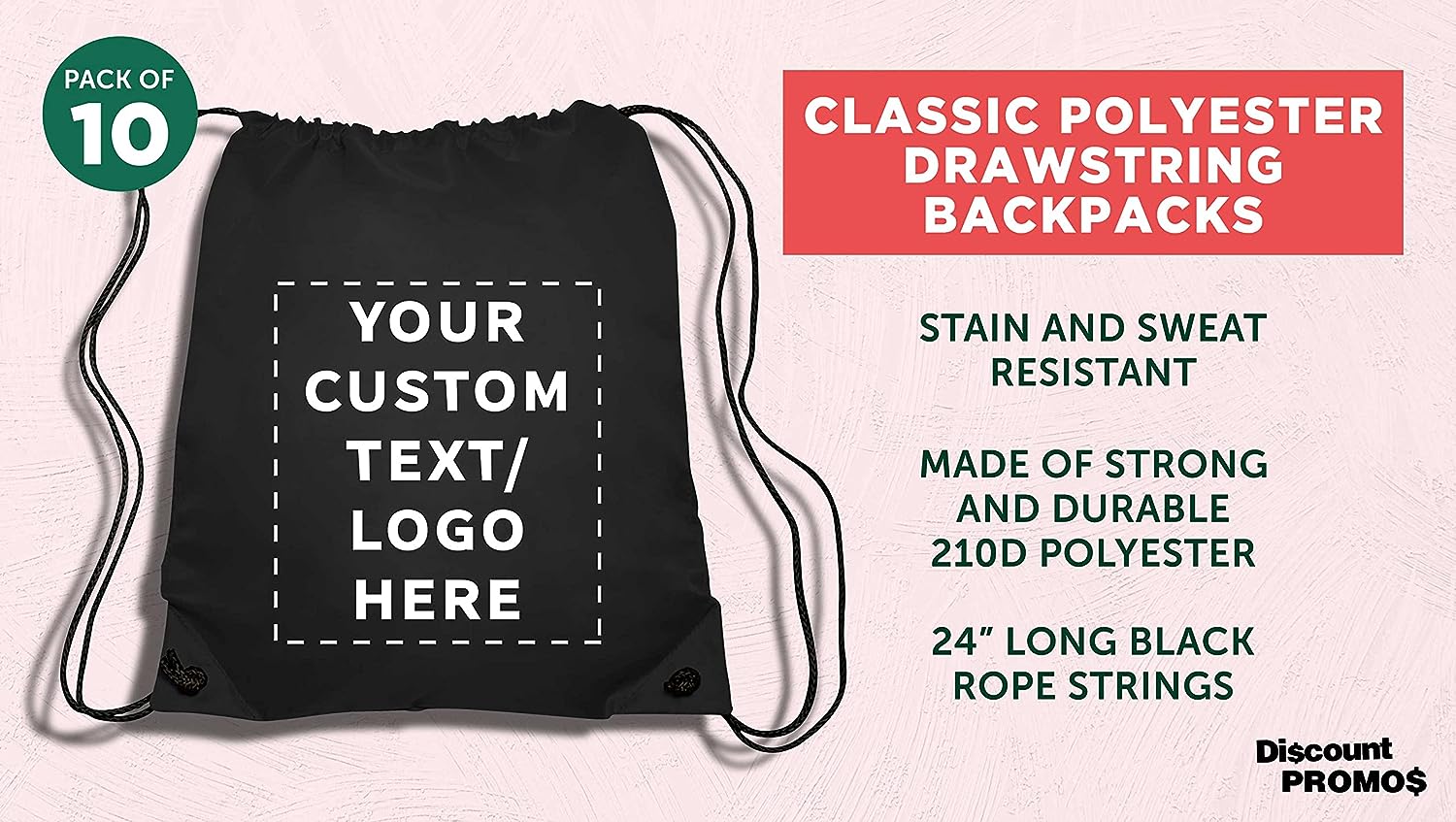 Custom Drawstring Backpacks Set of 10, Personalized Bulk Pack - Water Resistant, Perfect for Gym, Camping, Beach, Outdoor Sports - Black quantity