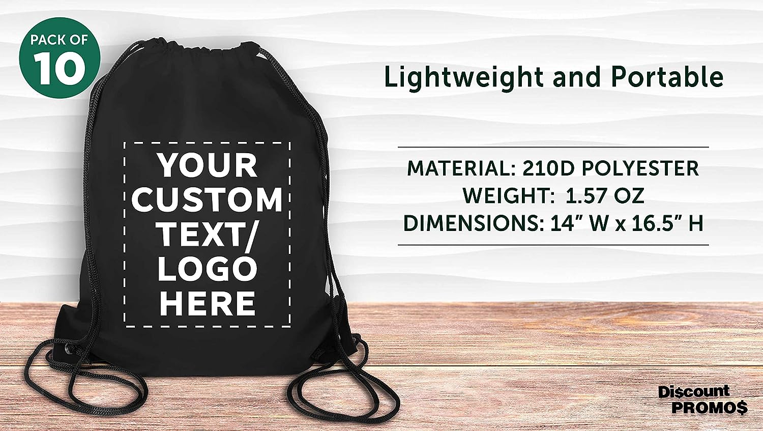/ Custom Drawstring Backpacks Set of 10, Personalized Bulk Pack – Water Resistant, Perfect for Gym, Camping, Beach, Outdoor Sports – Black