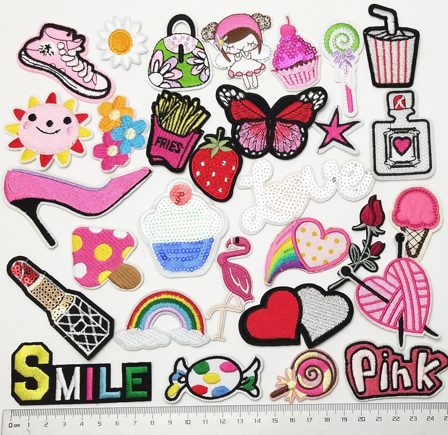 30pcs Random Assorted Styles Embroidered Patch Sew On/Iron On Patch Applique Clothes Dress Plant Hat Jeans Sewing Flowers Applique DIY Accessory (Assorted-Style 3)