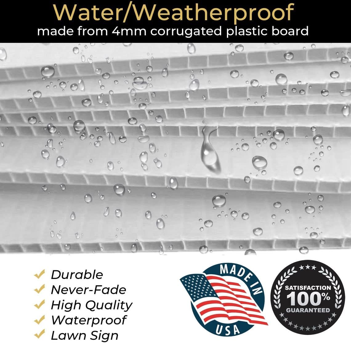 All signs are made with corrugated plastic and printed outdoor durable ;Colors do not fade and do not bleed. You can use it again and again. If you have any questions, concerns, or suggestions about this product, please send us a message. We would love to hear from you!