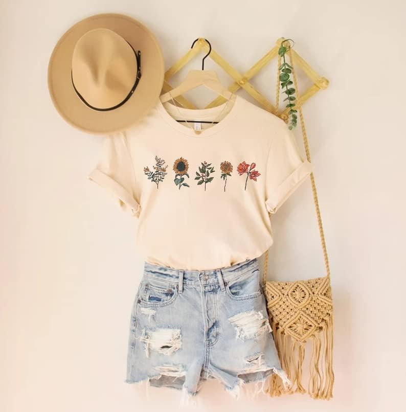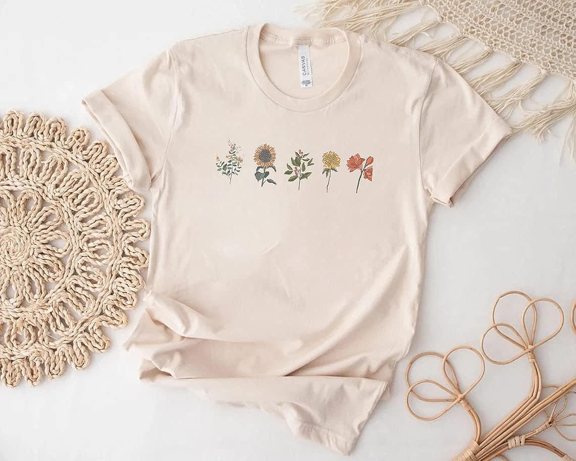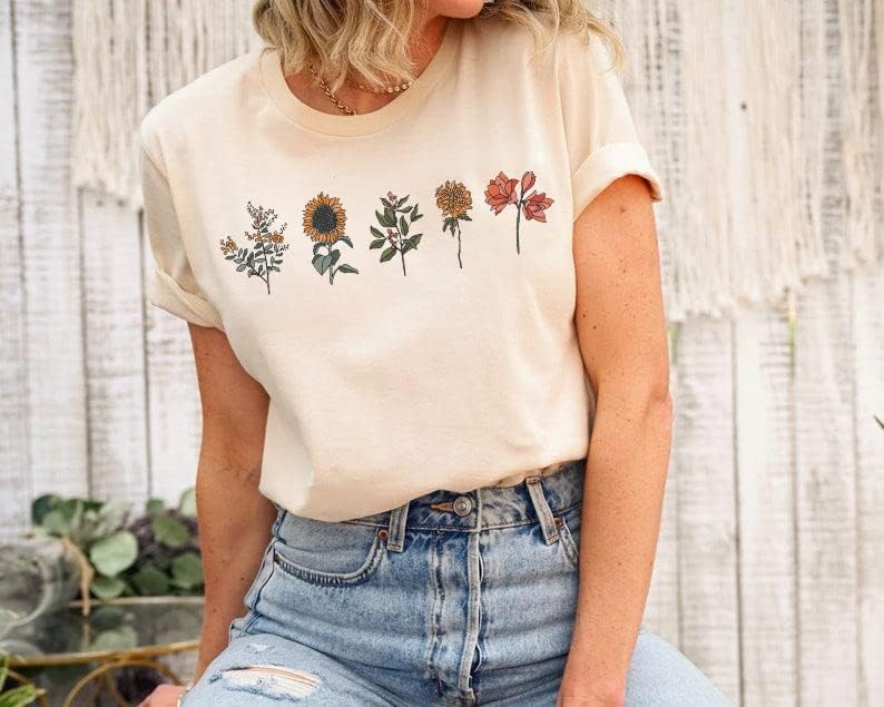 Plant Shirts Women Wildflowers T Shirt Funny Plant Lover Gifts Shirts Plant Flowers Casual Tee Garden Short Sleeve Tops quantity