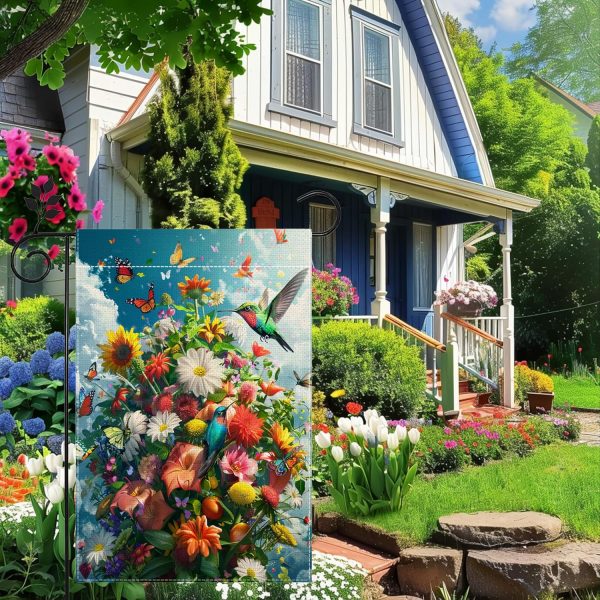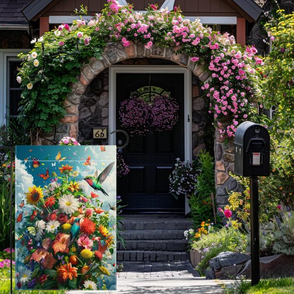 - Spring Summer Hummingbird Sunflower Flower Garden Flag 12×18 Inch Double Sided Burlap Colorful Floral Farmhouse Holiday Outdoor Yard Flag Home Decorations
