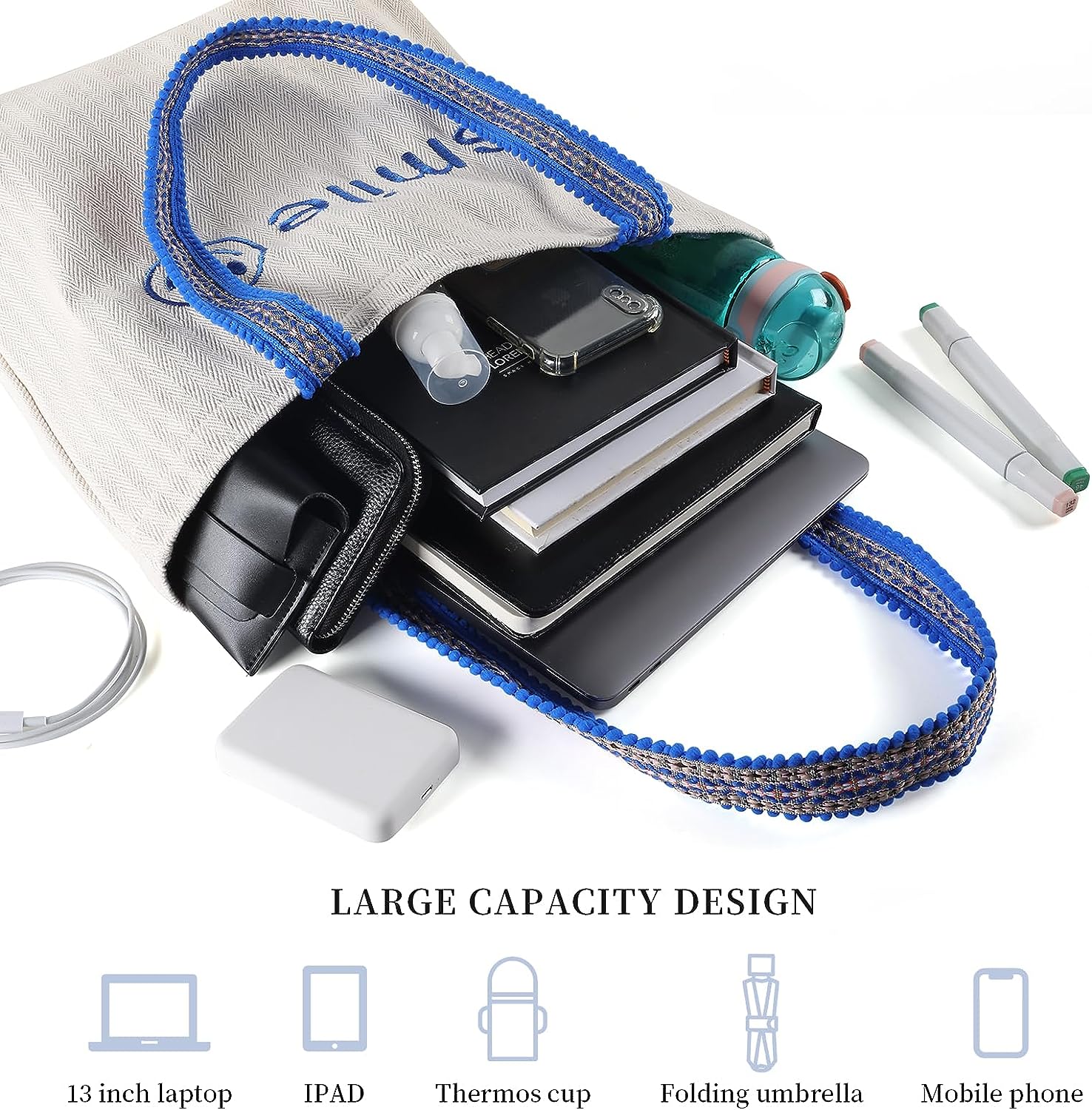 Tote canvas large travel bag,embroidery shoulder casual bags,fashion gift for women and girls,stylish handbag