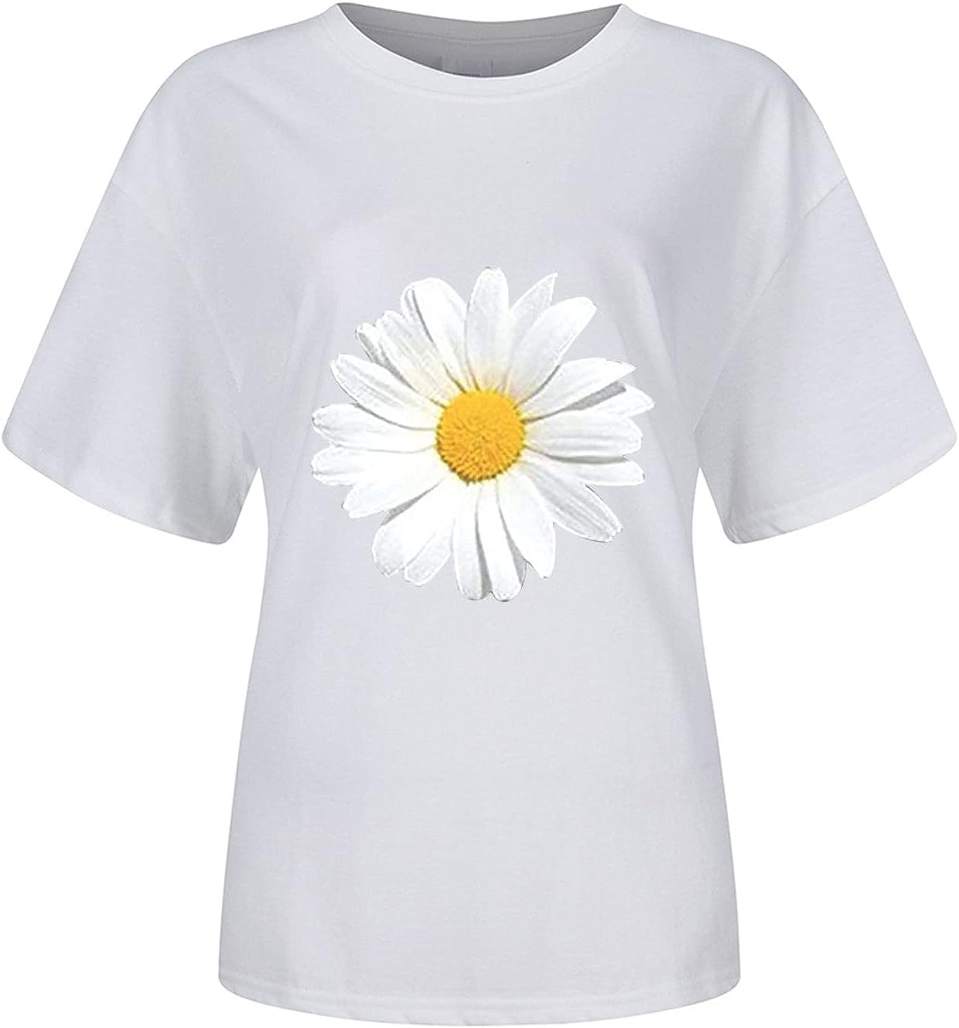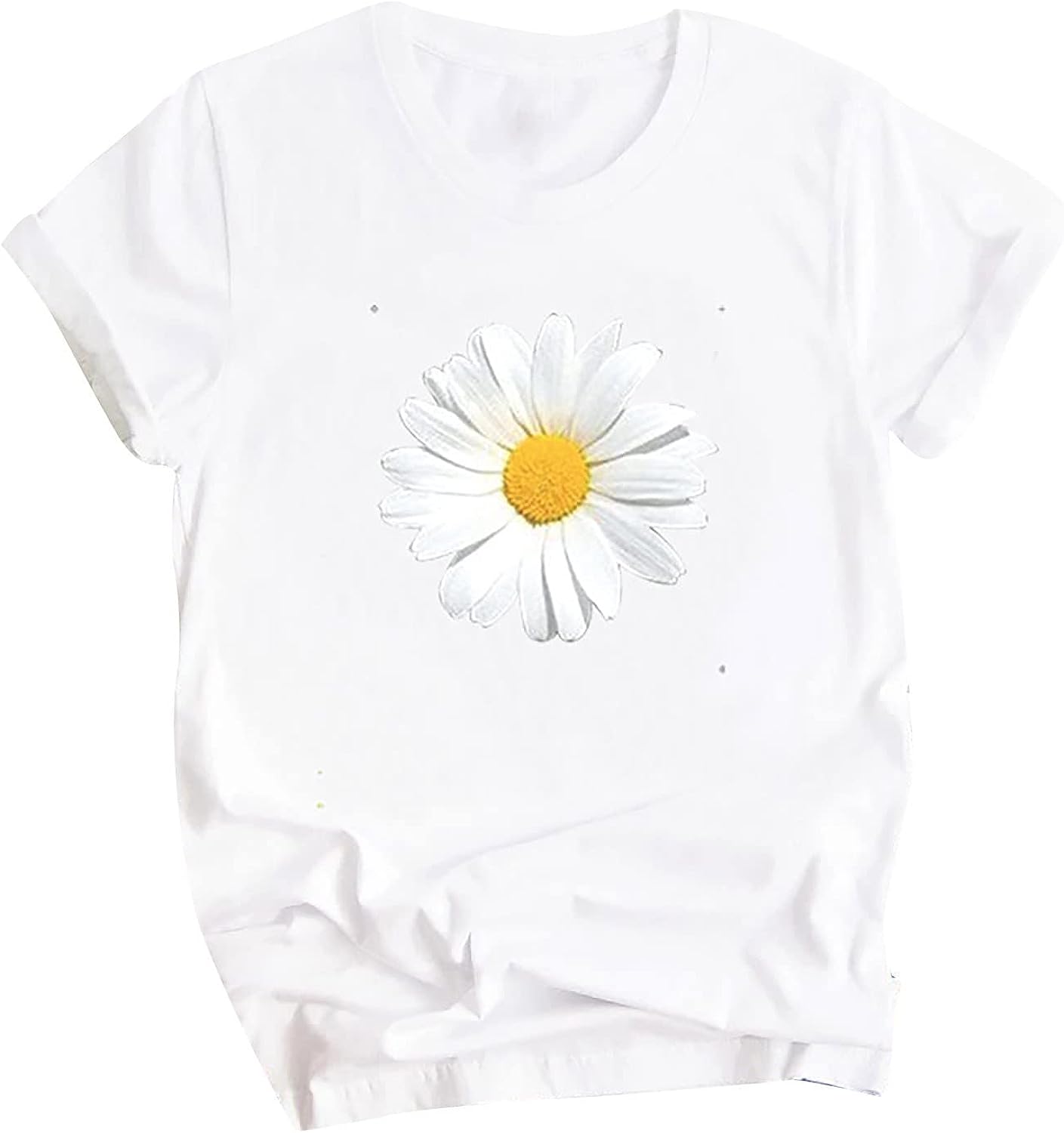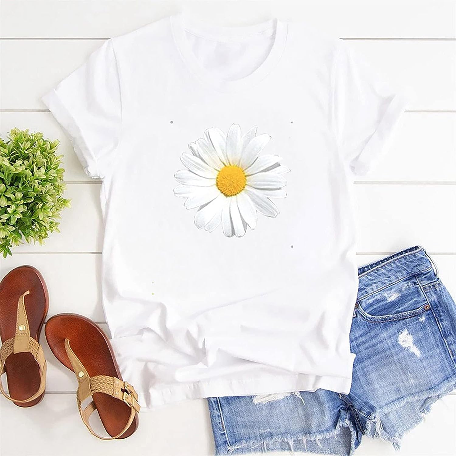 Women Daisy Flower T-Shirt Vintage Summer Simple Graphic Tee Casual Short Sleeve Floral Tee Shirts Regular Fit Tops